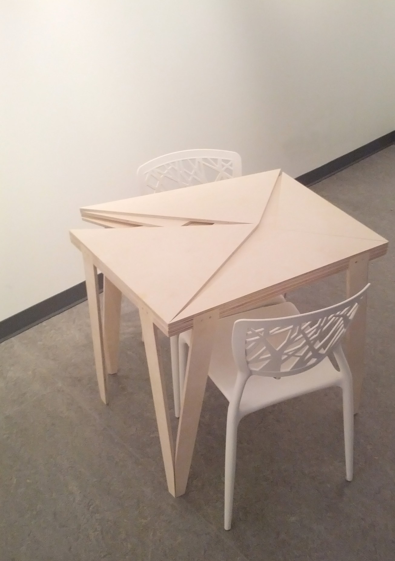 This two week project centred on the performance of a site analysis through the construction of a table, using only one 50″x 50″ sheet of 1/2″ baltic birch plywood. Kensington is a dynamic inner-city neighbourhood that retains its small-scale tight-knit feel despite its relative adjacency to the city centre. The neighbourhood is understood as a single zone, although it is comprised of two communities, Sunnyside and Hillhurst, which are linked/separated by the LRT and a retail height street (10th St NW.) The table, like the neighbourhood, receives its strength through the co-presence of small clustered and dynamic pieces. Together these pieces fit snug, although when too tightly pressed, the tectonic complexity and dynamism of the table becomes unrecognizable. It is only with the ever-changing demands placed on it by its use, that the reveals its geometry and the traces its history (friction) are made visible and/or tangible.